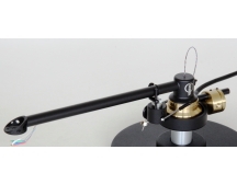 The whole turntable is supported by an optional high density plywood plate. An acrylic cover protects platter and tone arm while reflecting the turntable's original shape. A 45rpm adaptor is provided and is simply slipped over the 33rpm pulley. The turntable can accommodate various tonearms by the use of different brass bases and it allows for VTA adjustment on any tone arm mounted.